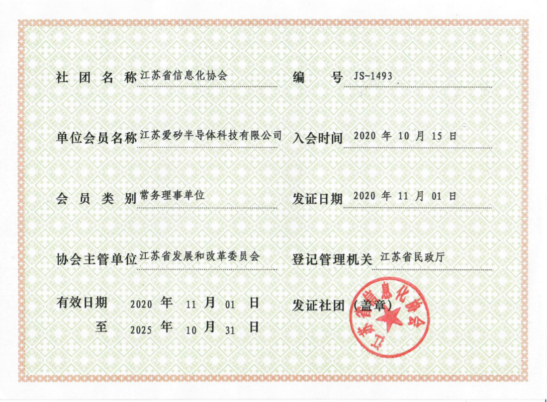 江蘇省信息化協會證書-常務理事單位2020.11-2025.10